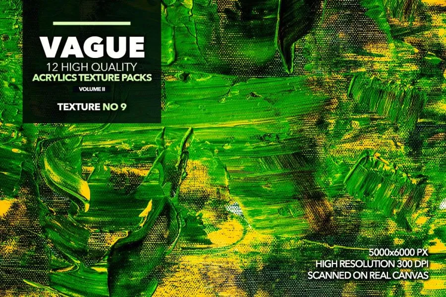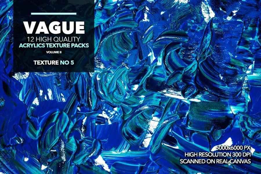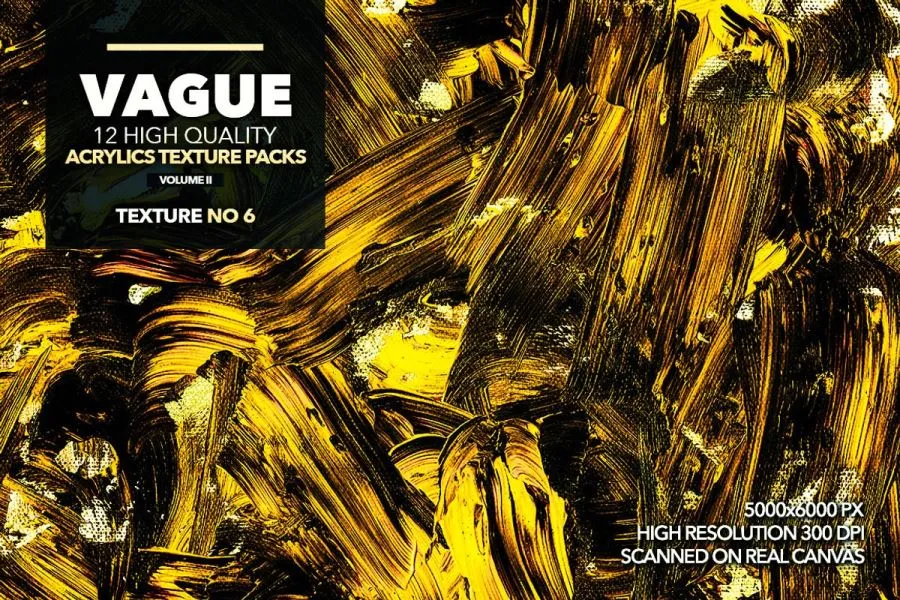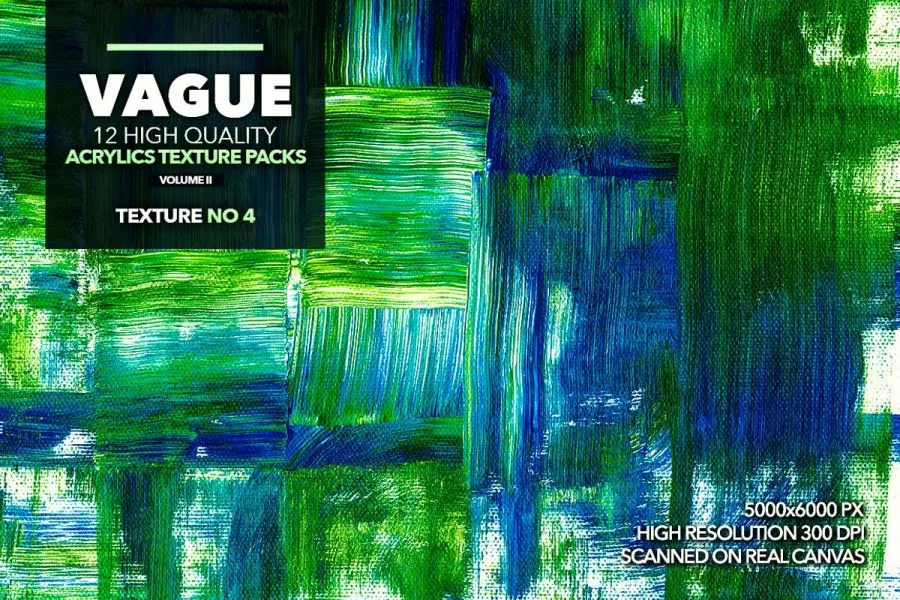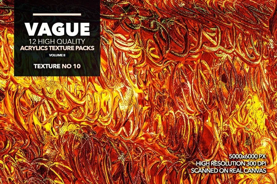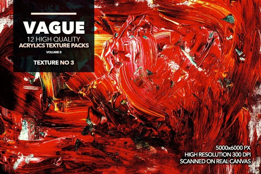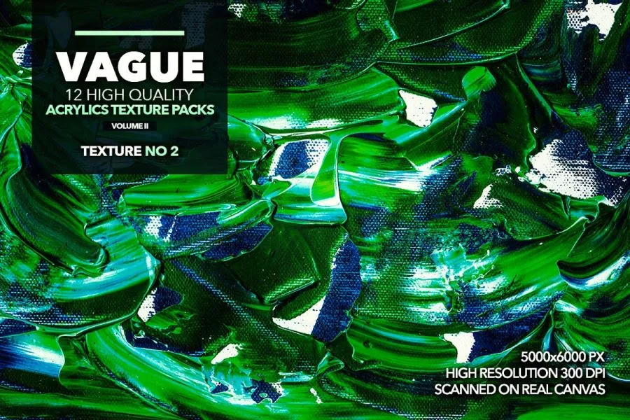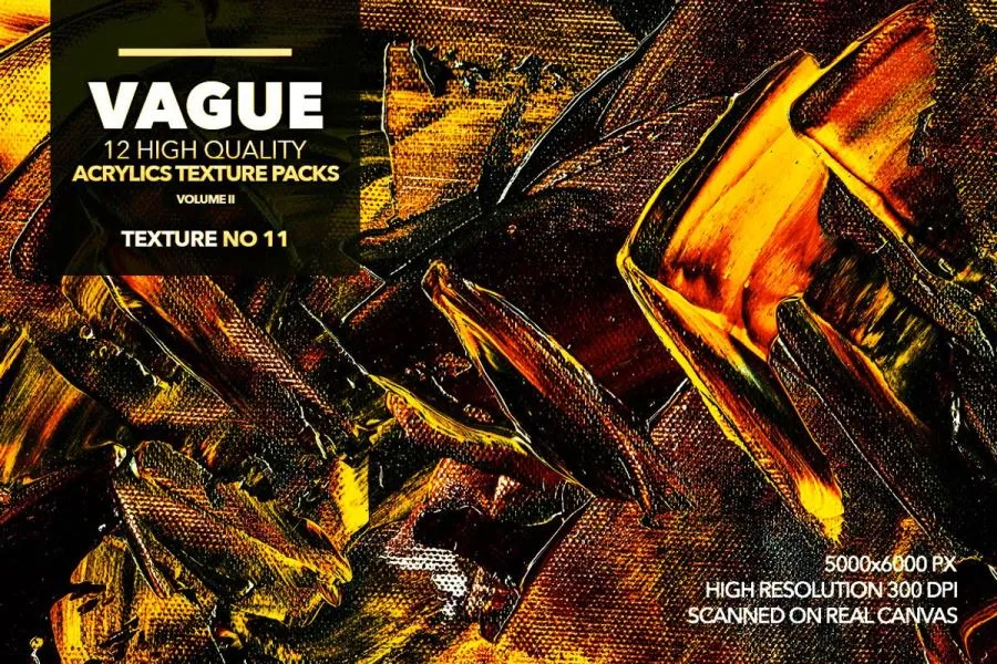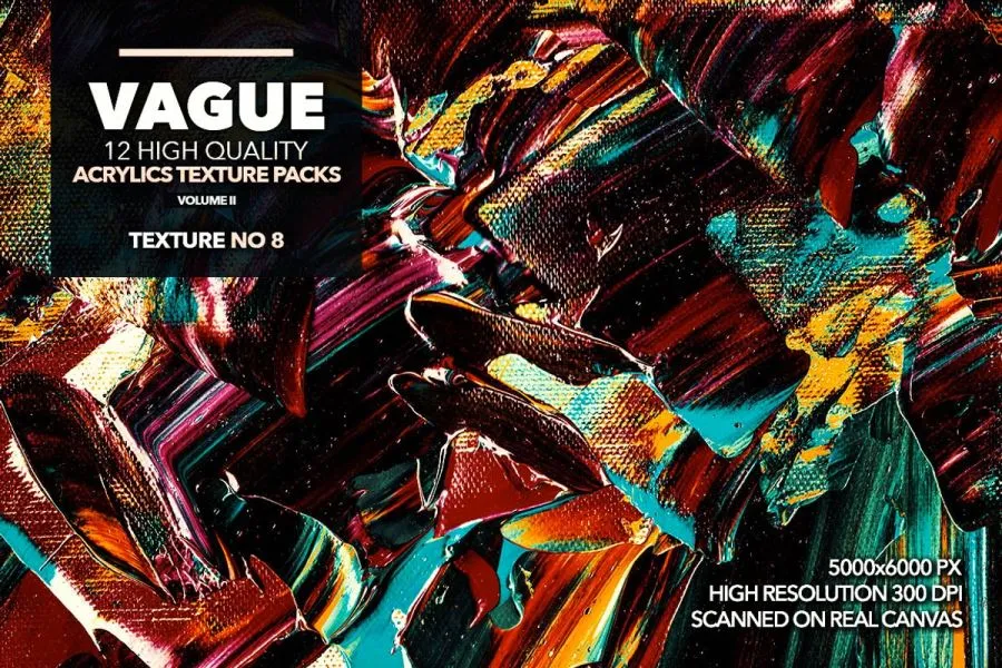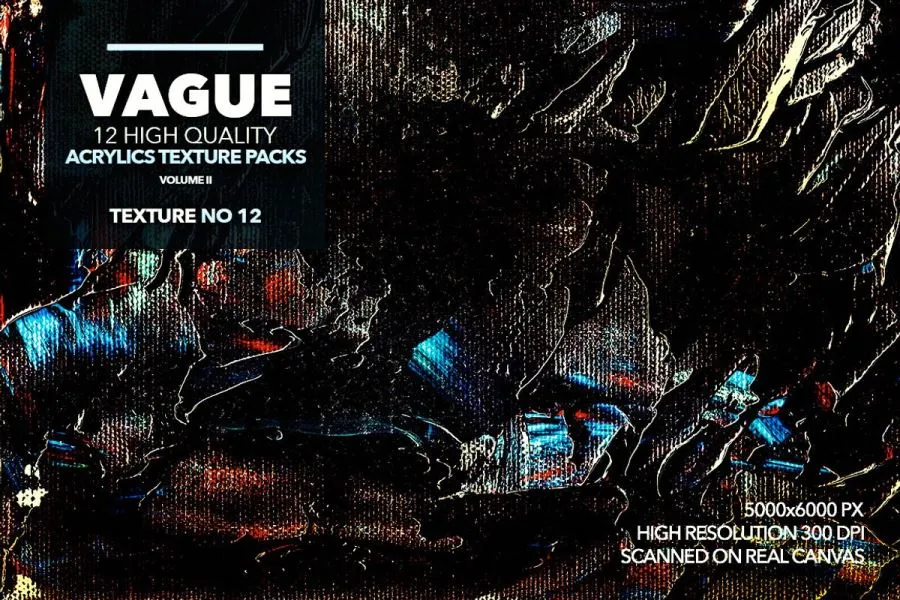 12 种手工制作的亚克力纹理第二卷,纯画布丙烯颜料创作。高分辨率扫描,并使用Photoshop数字化,使其色彩更大胆、更具戏剧性。适用于各种艺术项目,也可与各种字体设计作品结合使用。