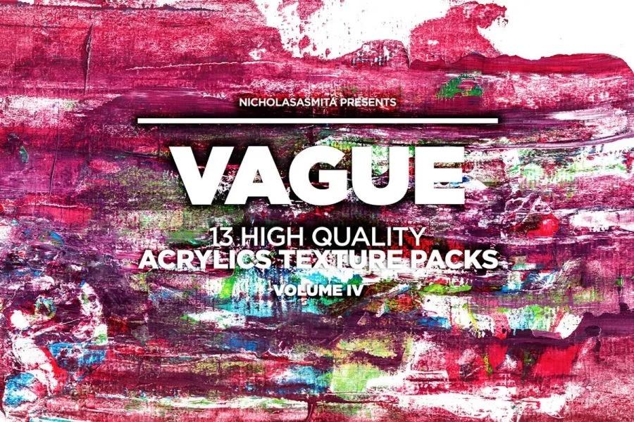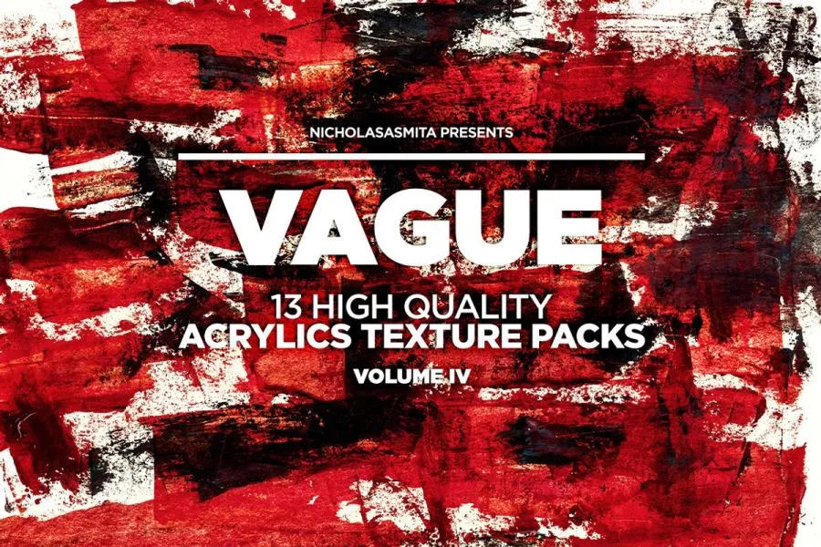 13 种手工制作的亚克力纹理第四卷,纯画布丙烯颜料创作。高分辨率扫描,并使用Photoshop数字化,使其色彩更大胆、更具戏剧性。适用于各种艺术项目,也可与各种字体设计作品结合使用。
