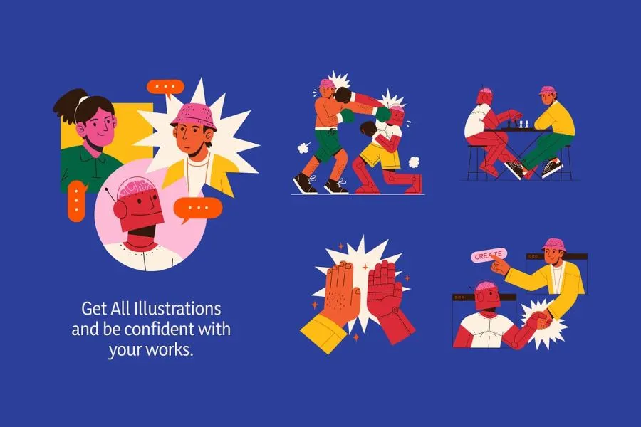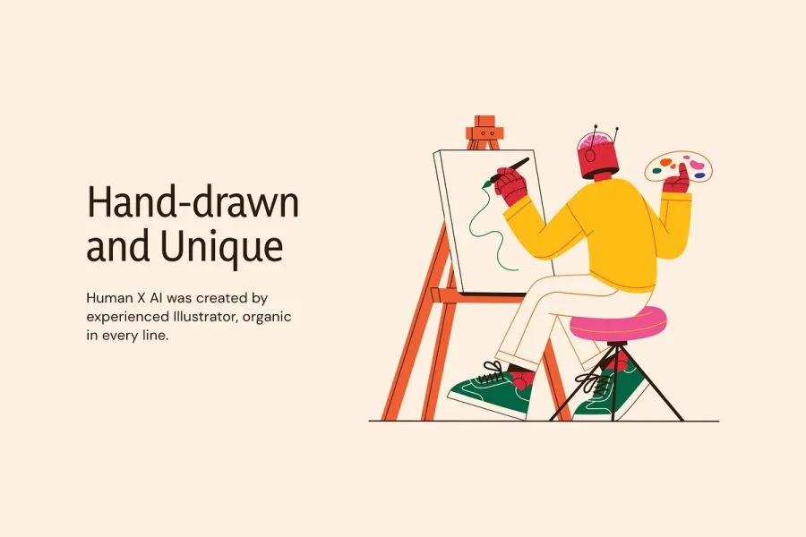 Human X AI 提供矢量格式,包含 Adobe Illustrator、SVG 和 Figma 源文件。此外,我们还提供可立即使用的透明背景 PNG 图像。所有插图均可自定义颜色和形状。