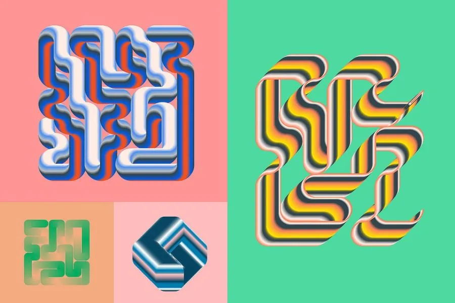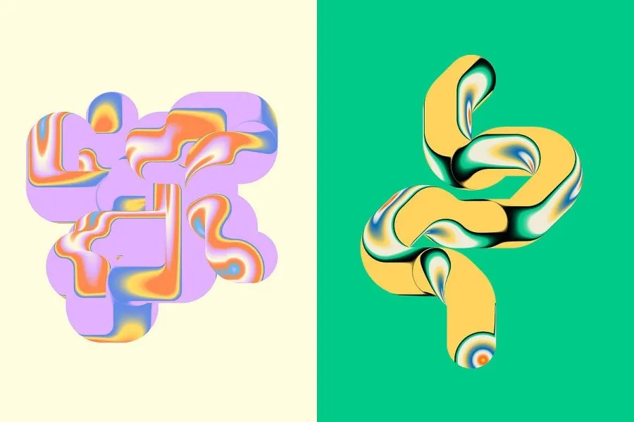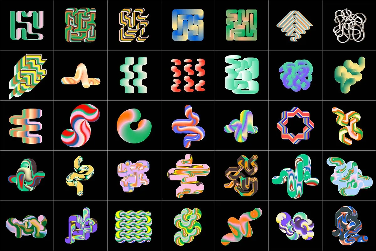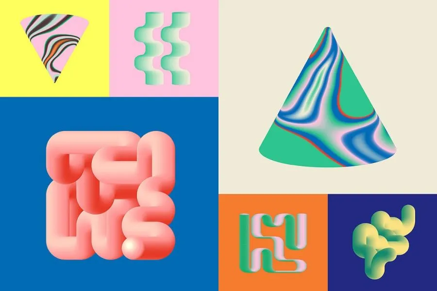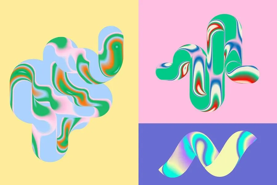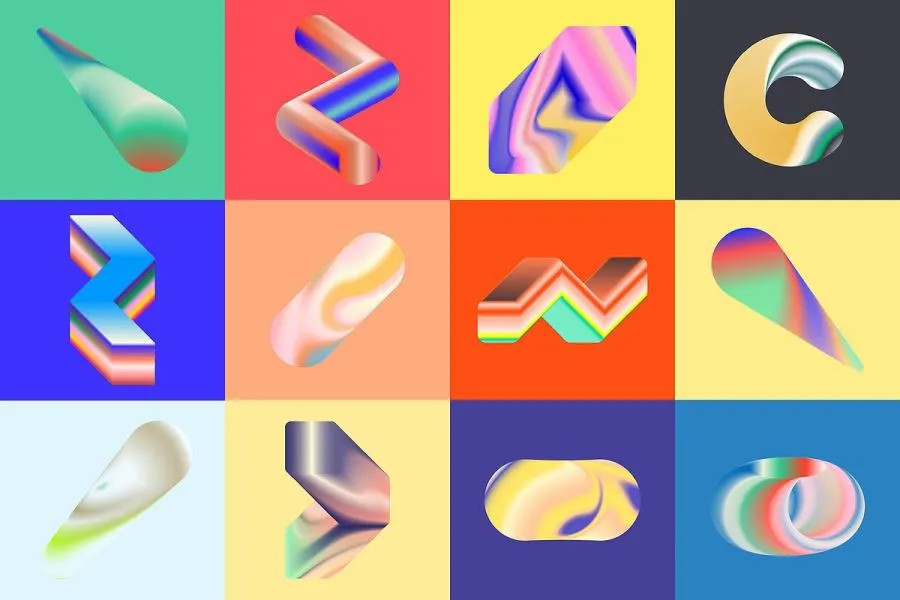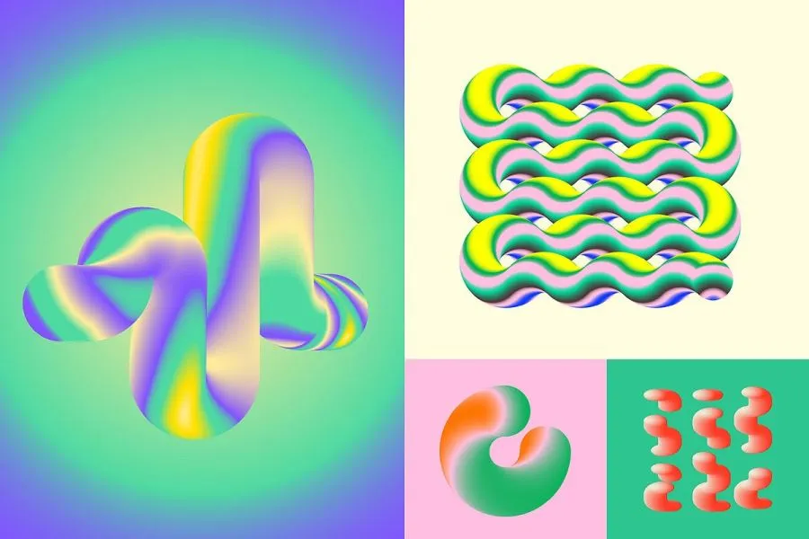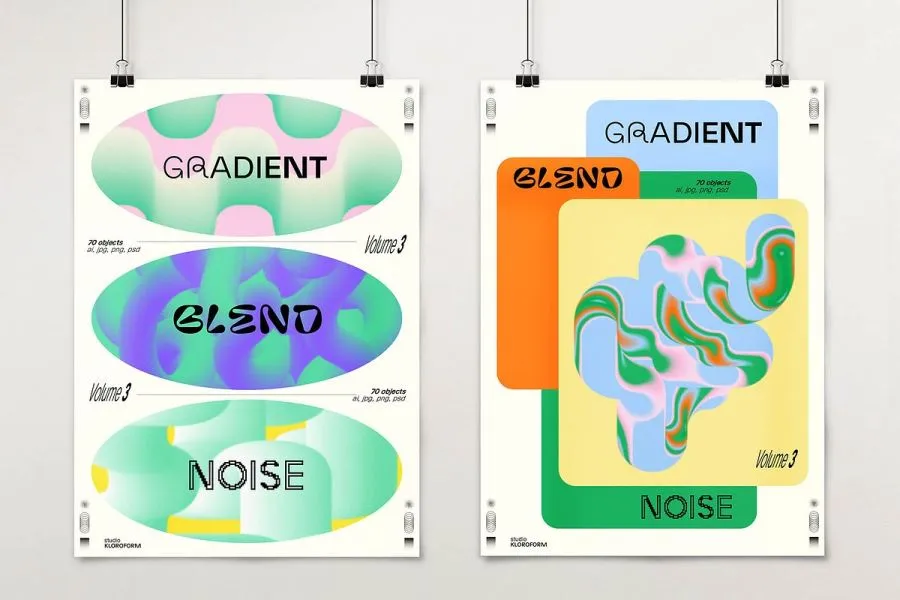 70 个古怪、时髦和迷幻的设计元素集,具有渐变混合效果