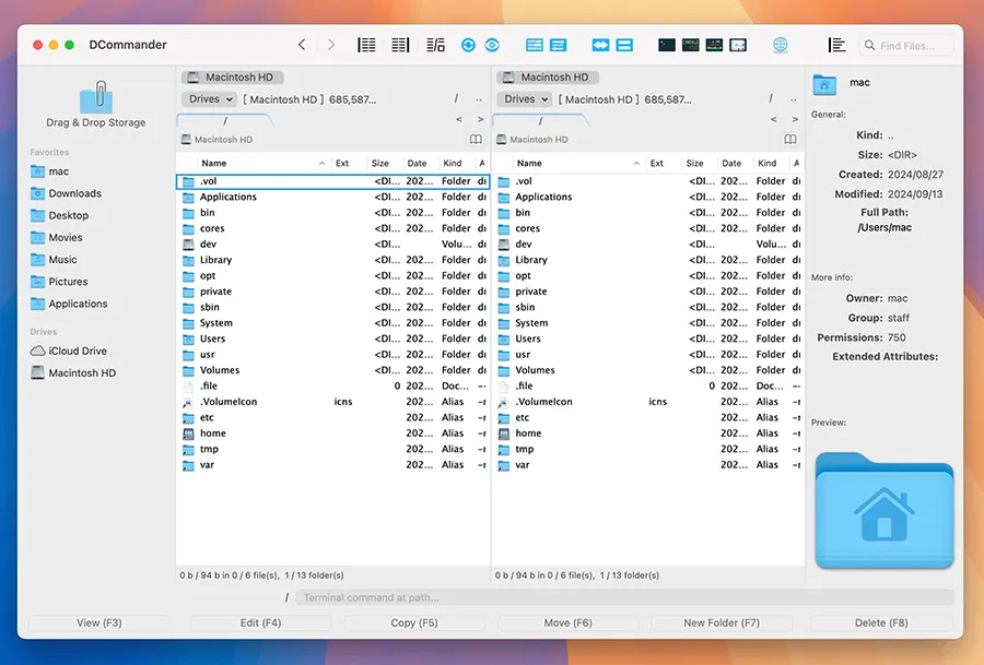 DCommander 中文常被称为“双栏文件管理器”,简称 DCmd,是一款专为 macOS 打造的高效文件管理工具。它以双窗口并列的方式展现文件目录,让用户在不同路径之间快速拖放、复制或移动文件。相比 Finder,DCommander 更适合需要处理大量文件、频繁进行目录对比与同步的专业用户,如开发者、系统管理员以及需要整理大批量资源的创作者。Mac 版在保持简洁直观的同时,针对 macOS 的操作习惯和系统特性进行了优化,操作顺畅自然。