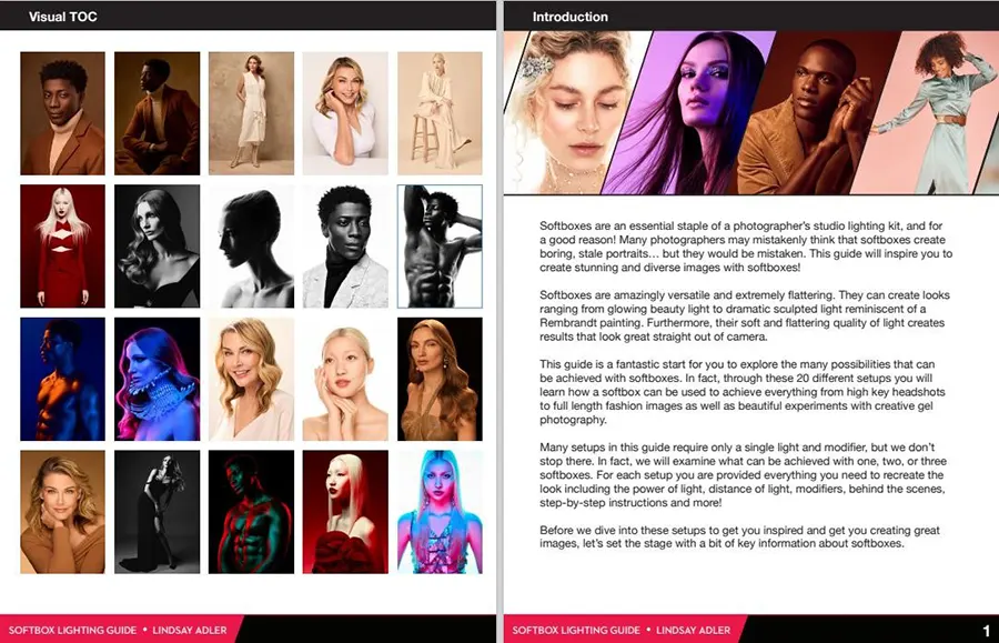 在本指南中,我将指导并启发您如何使用柔光箱创建令人惊叹且多样化的图像。通过 20 种不同的设置,您将了解如何使用柔光箱来实现从高调头像、雕塑肖像、全身时尚图像以及创意凝胶摄影的美丽实验等一切内容。
